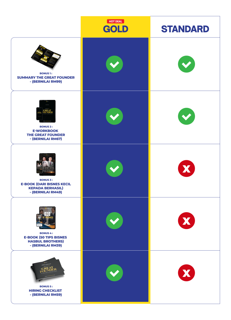 Bonus khas untuk anda peserta Gold. Dapatkan Hiring Checklist bernilai RM59 ini secara percuma dalam seminar nanti.