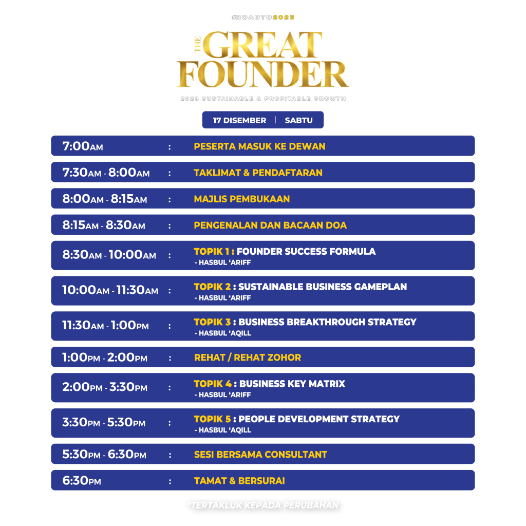 Dalam Seminar The Great Founder, kami akan dedahkan…